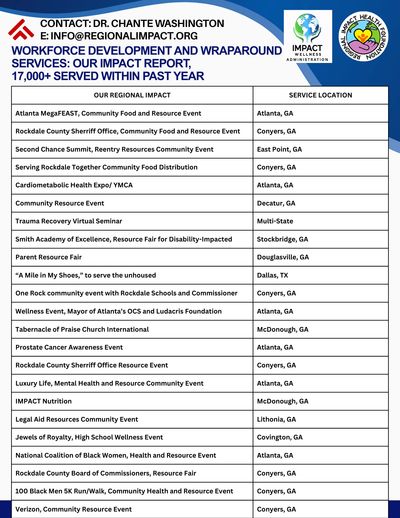 At Regional Impact Health Foundation, we believe that everyone deserves access to the resources necessary for achieving their health and wellness goals. Our dedicated team is committed to providing personalized support and expert advice tailored to meet your individual needs. Whether you are looking to gain workforce development skills, improve your mental state, manage a chronic condition, recover from financial insecurity, housing instability, trauma or substance use, we are here to help. Our comprehensive range of products and services, including workforce development, job placement, jobs-driven training, and wellness workshops, ensures that you have access to essential resources Join us on the journey to a healthier, self-sufficient you living your full potential.